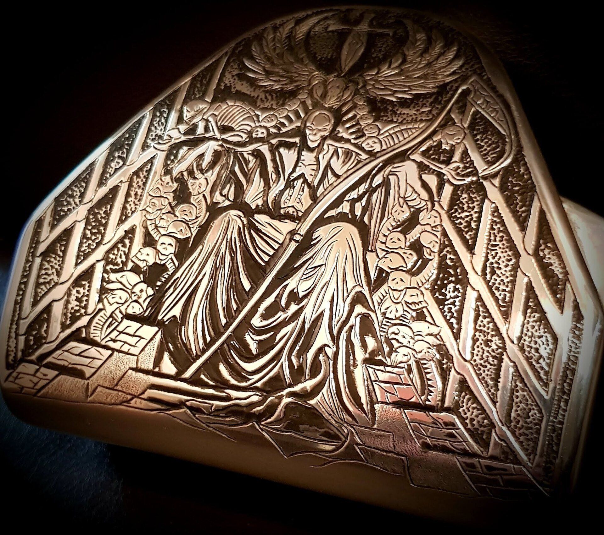 Bruno s'affaire à pousser les limites de son art en innovant les techniques et les designs afin de toujours surprendre. Déjà reconnu de le milieu de la Kustom Kulture avec ses nombreuses réalisations sur les carters et autres pièces de Motos. Il a su varier ses plaisirs et poser sa touche très personnelle notamment sur des ornements de mobilier, des boucles de ceinture, des broches et des pin's, des chevalières, instruments de musique et bien d’autres bijoux et objets en métal de toutes origines.